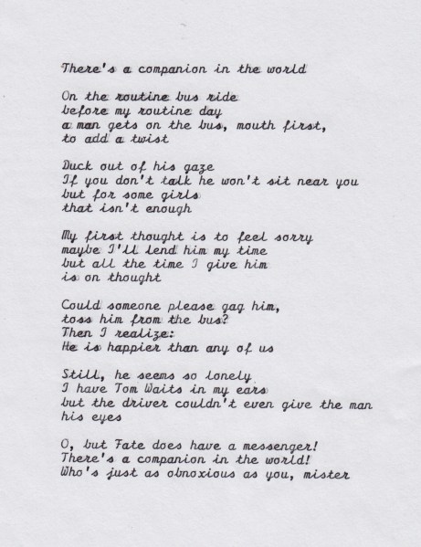 There’s a companion in this world August 26, 2011 · by Eric Tegethoff Share this: Click to share on X (Opens in new window) X Click to share on Facebook (Opens in new window) Facebook Like Loading... Related
