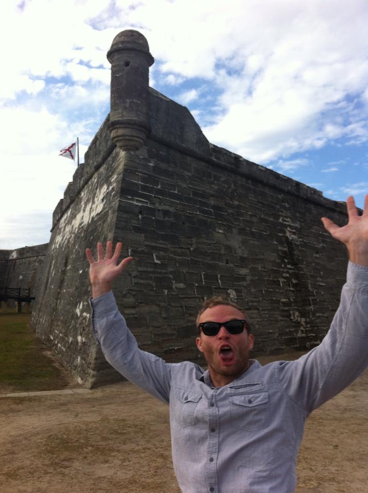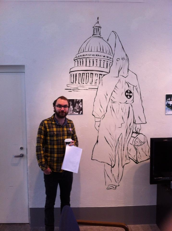 Stetson Kennedy fought the KKK. This painting is based on a real photograph. The Capitol did not find the stunt of dressing in a KKK robe so funny.
